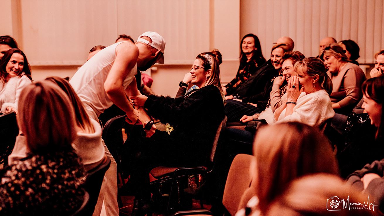 Na scenie pojawiły się zabawne skecze o codziennym życiu, sporo improwizacji oraz luźny kontakt z publicznością, dzięki czemu atmosfera była bardzo swobodna, a cały wieczór minął w naprawdę fajnym, pozytywnym klimacie.