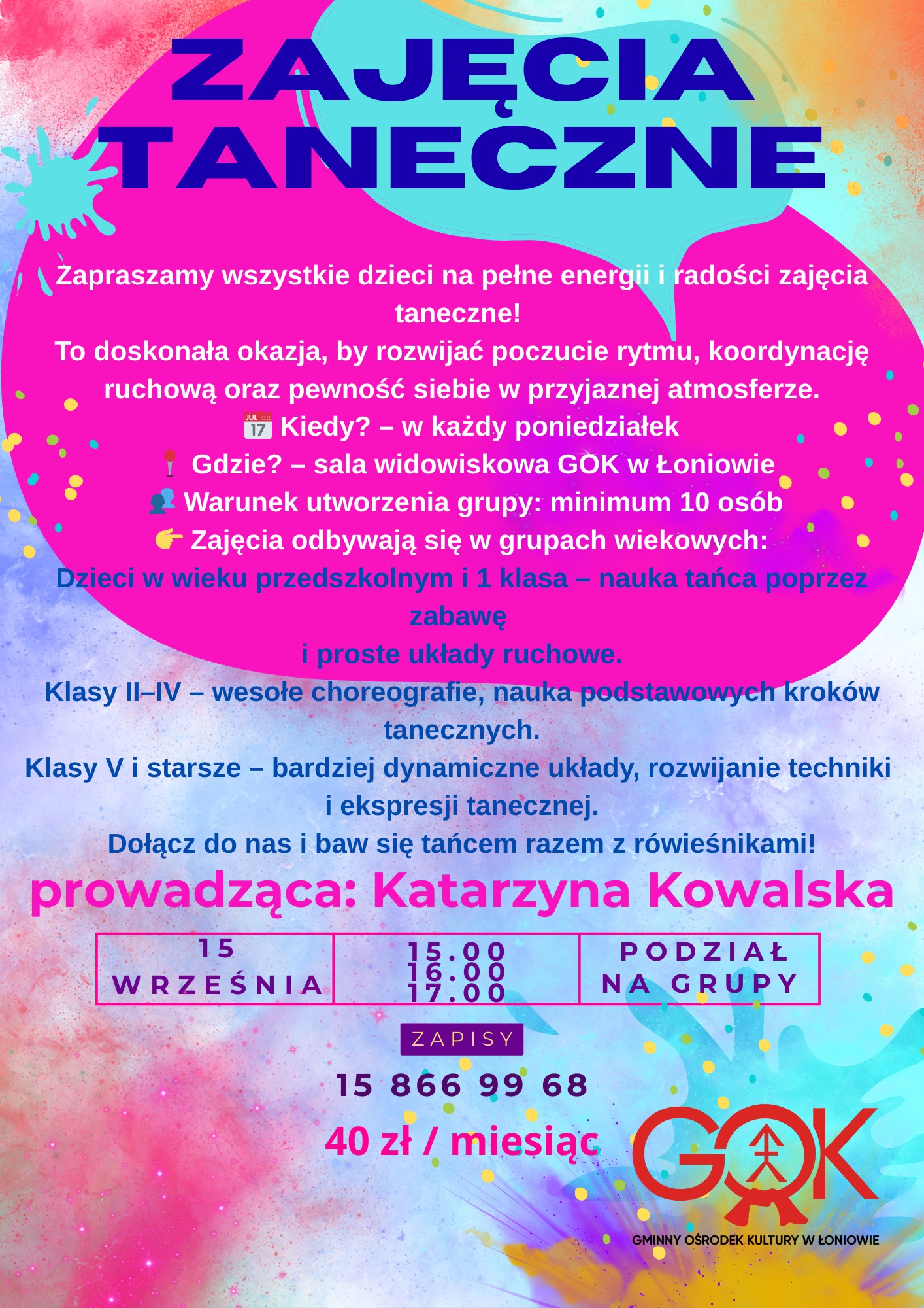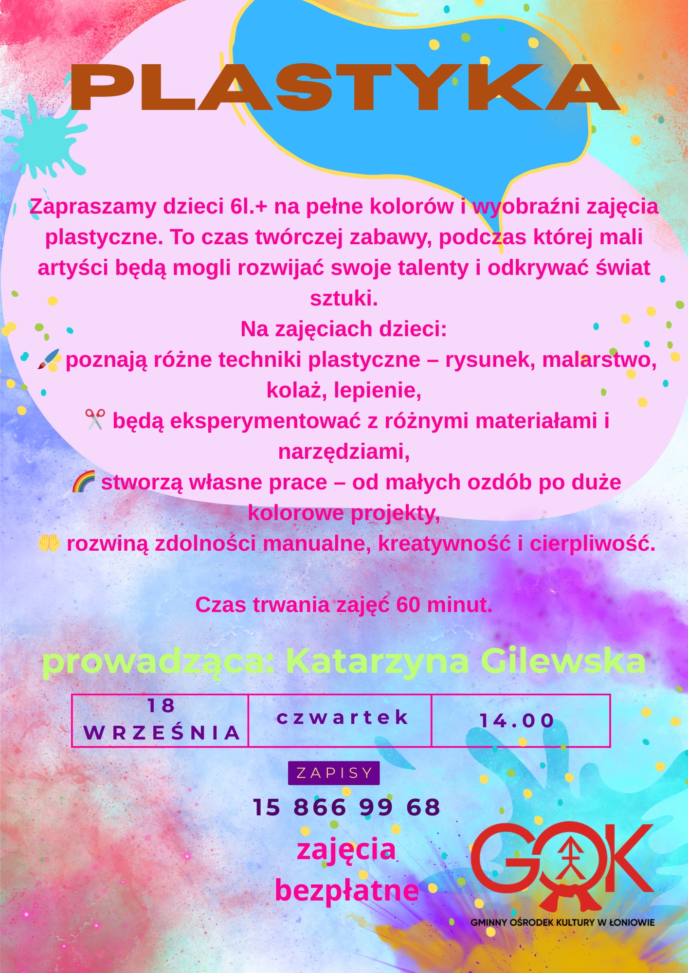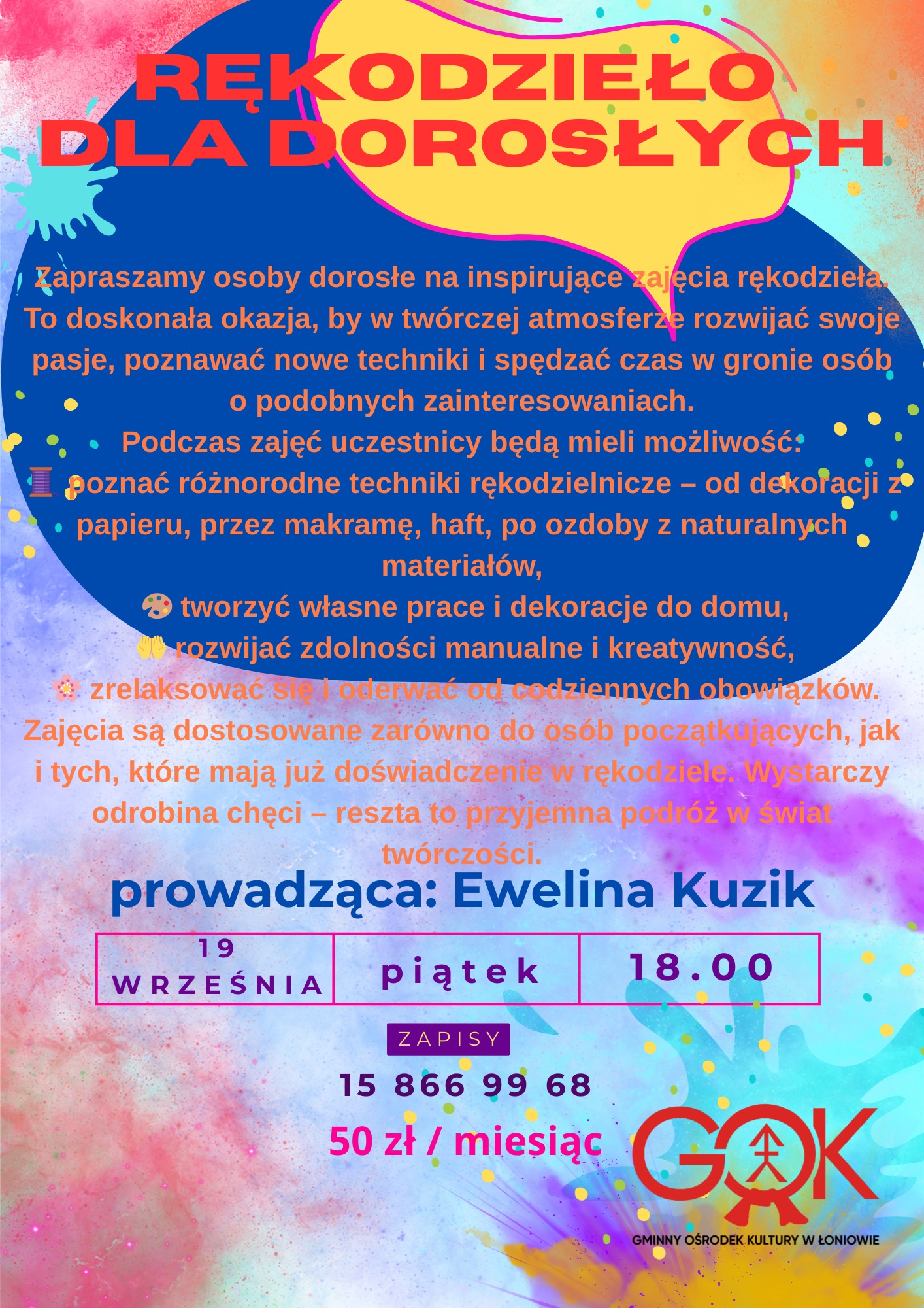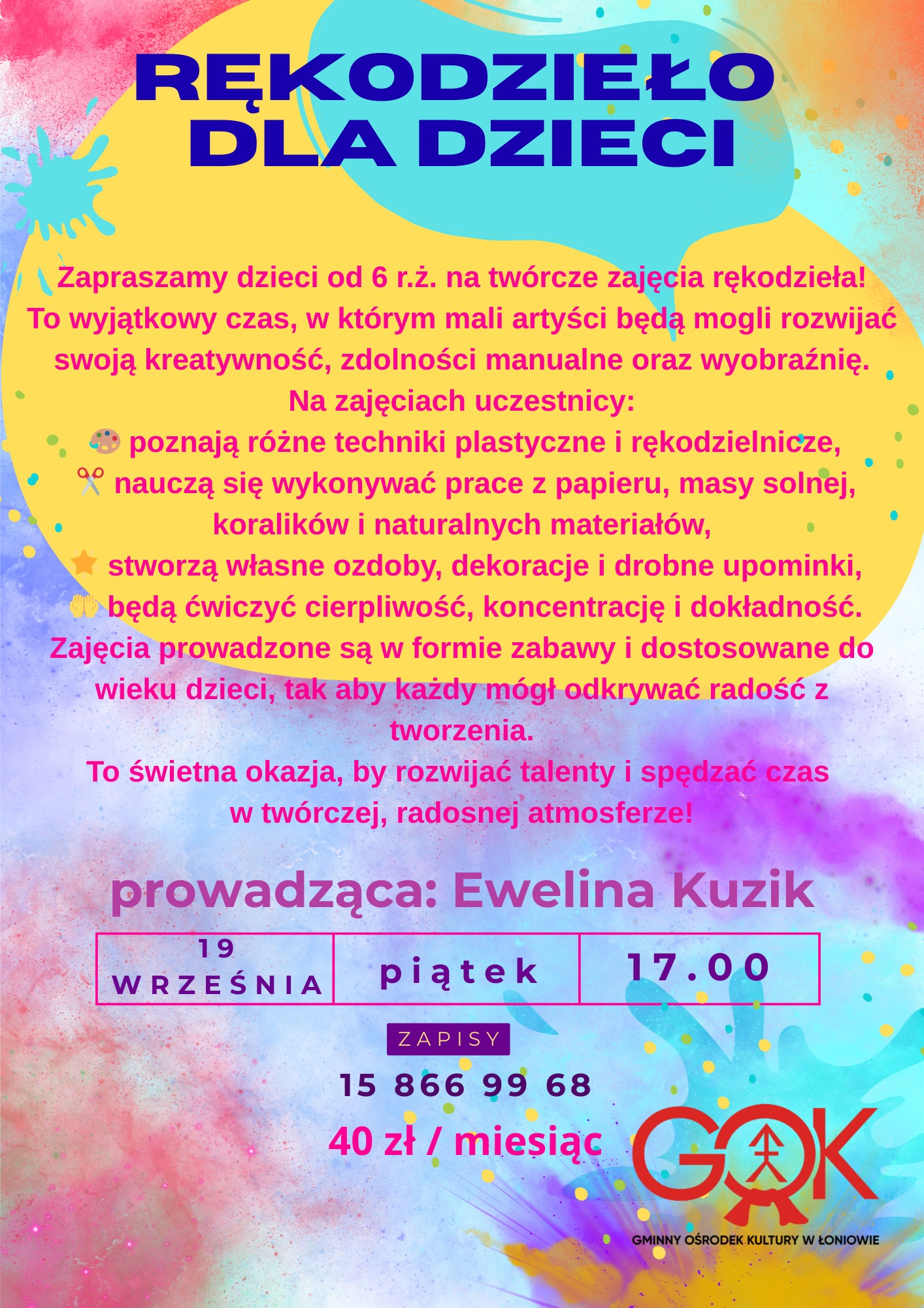 Startują zapisy na zajęcia w Gminny Ośrodek Kultury w Łoniowie!